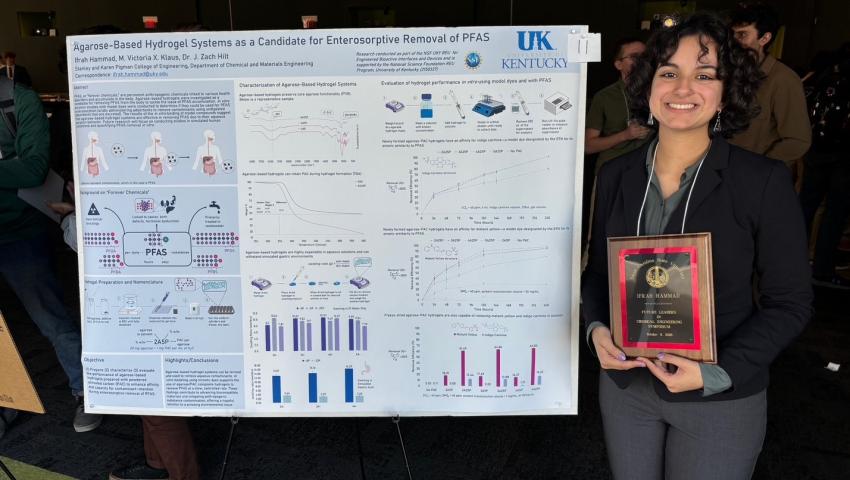 Eighteen of the most talented chemical engineering undergraduates in the U.S. were selected to attend the symposium. Of those, a winner for Best Poster and Best Soundbite was selected. Hammad’s presentation, “Agarose-Based Hydrogel Systems as a Candidate for Enterosorptive Removal of PFAS,” was named Best Soundbite for her excellent presentation of her research.